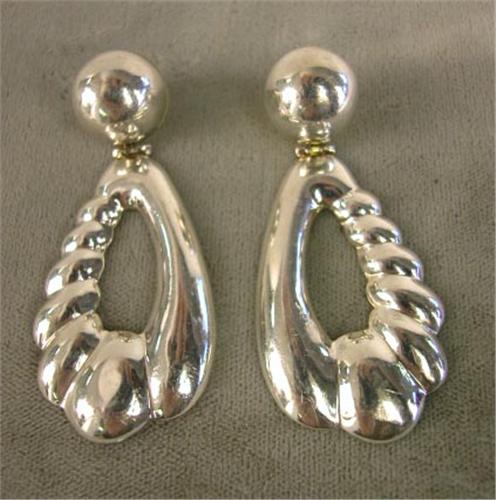 A PAIR OF MEXICAN STERLING SILVER HOOP EARRINGS;