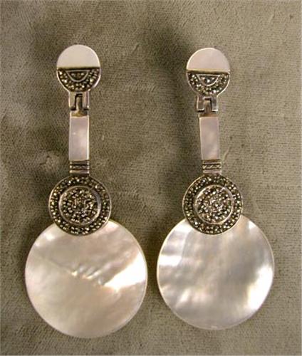 A PAIR OF MOTHER-OF-PEARL AND MARCASITE EARRINGS;