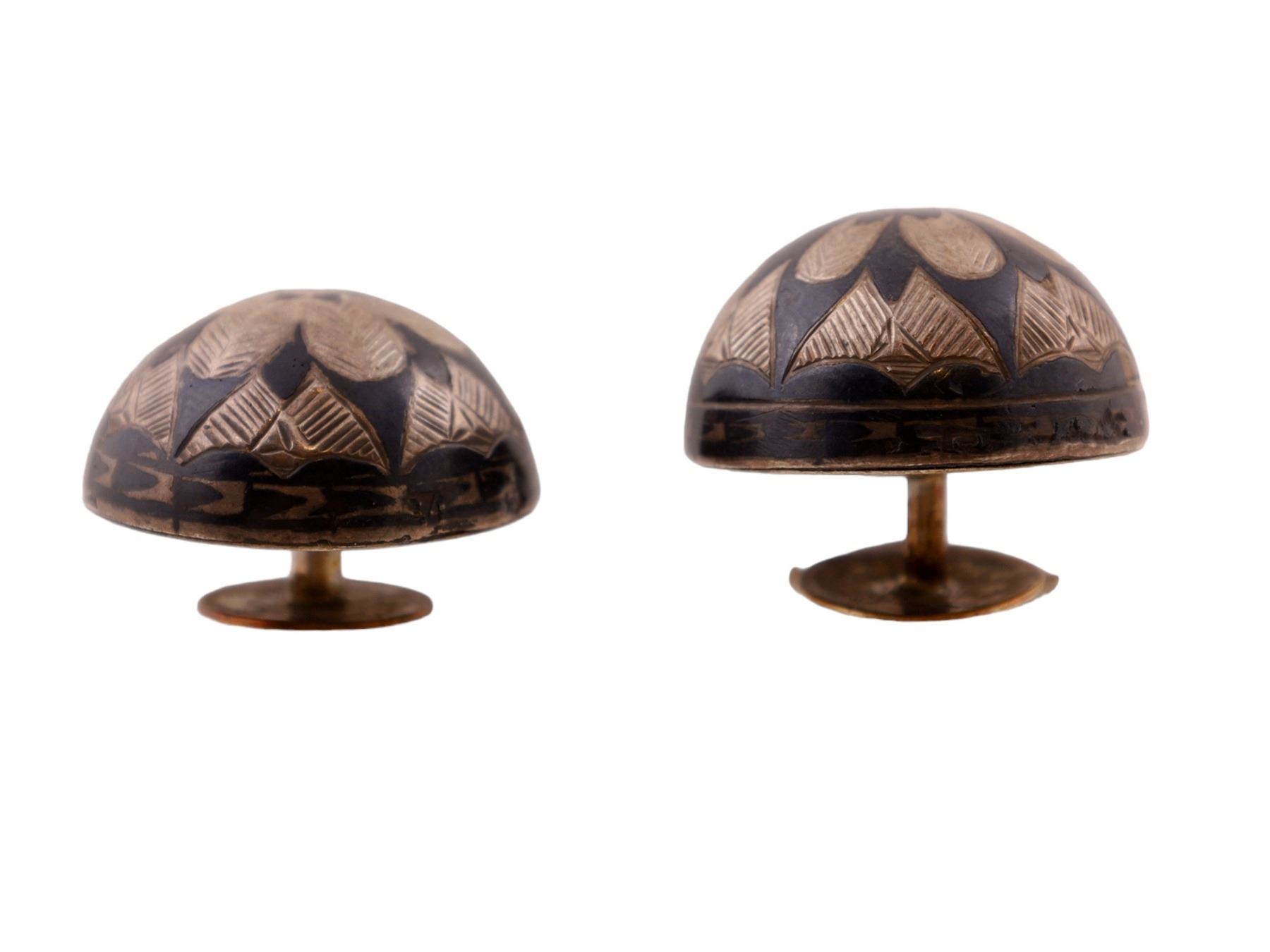 A PAIR OF NIELLO SILVER BUTTONS, CAUCASES, 19TH CEN.