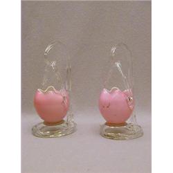 A PAIR OF OPALINE LILY VASES, c.1890, (one s.d.), suspended from clear glass trailed branches, height 20cm (2) 30-50