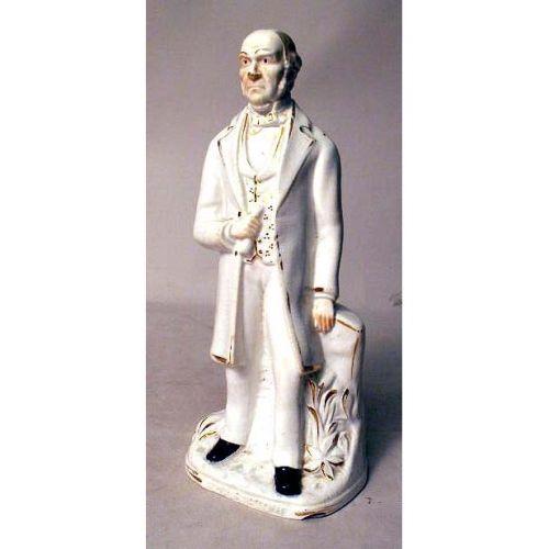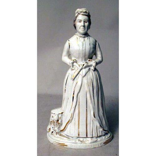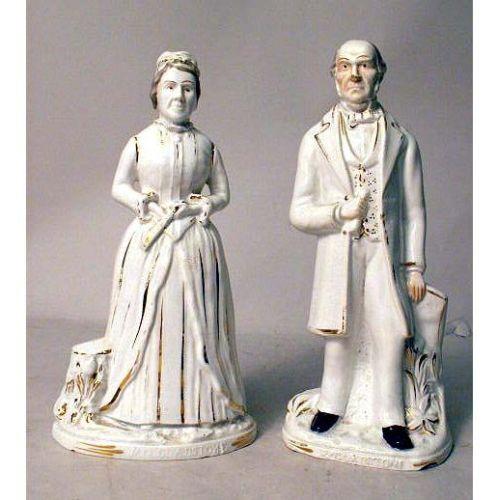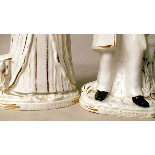 A PAIR OF PARCEL-GILT PORCELAIN DECORATED FIGURES<BR><BR>Of Mr. and Mrs. Gladstone, losses and wear, 10"h