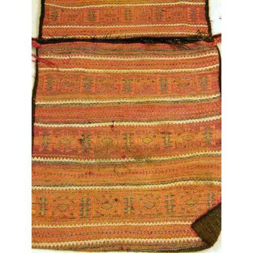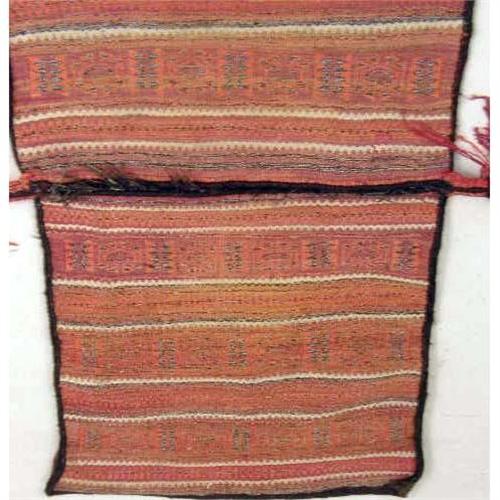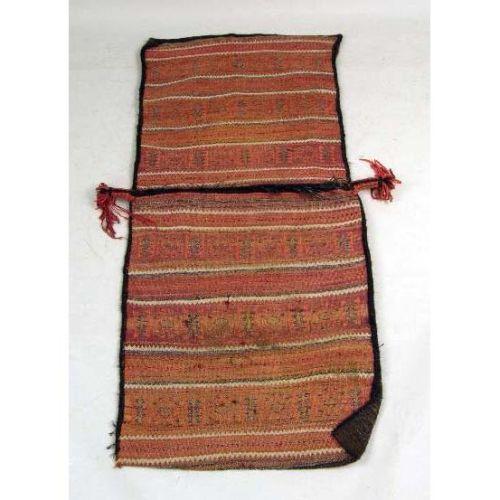 A PAIR OF POLYCHROME AND GEOMETRICALLY DECORATED WOVEN SADDLE BAGS<BR><BR>Probably Central Asia, some wear, approximately 22"h x 31"w