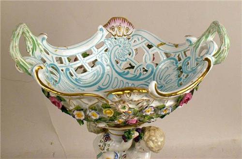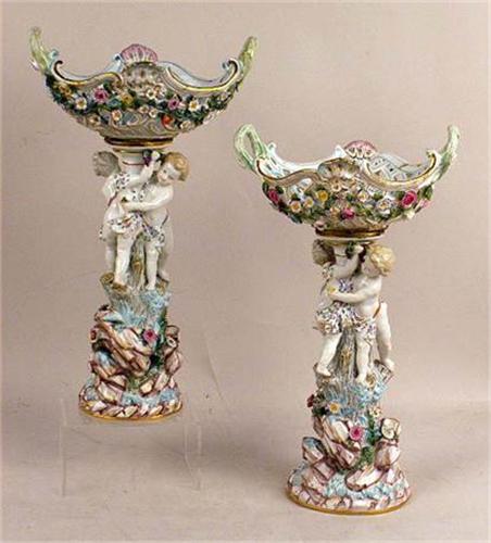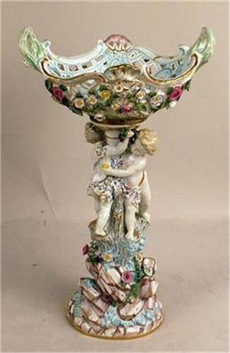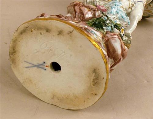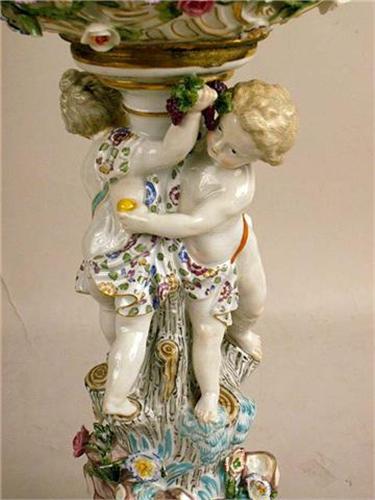 Probably German, Meissen, decorated with children on tree stump, marked underside with crossed swords, losses to foot, 15 3/4"h