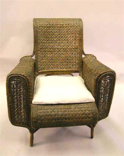 A PAIR OF POLYCHROME-DECORATED RATTAN ARMCHAIRS;