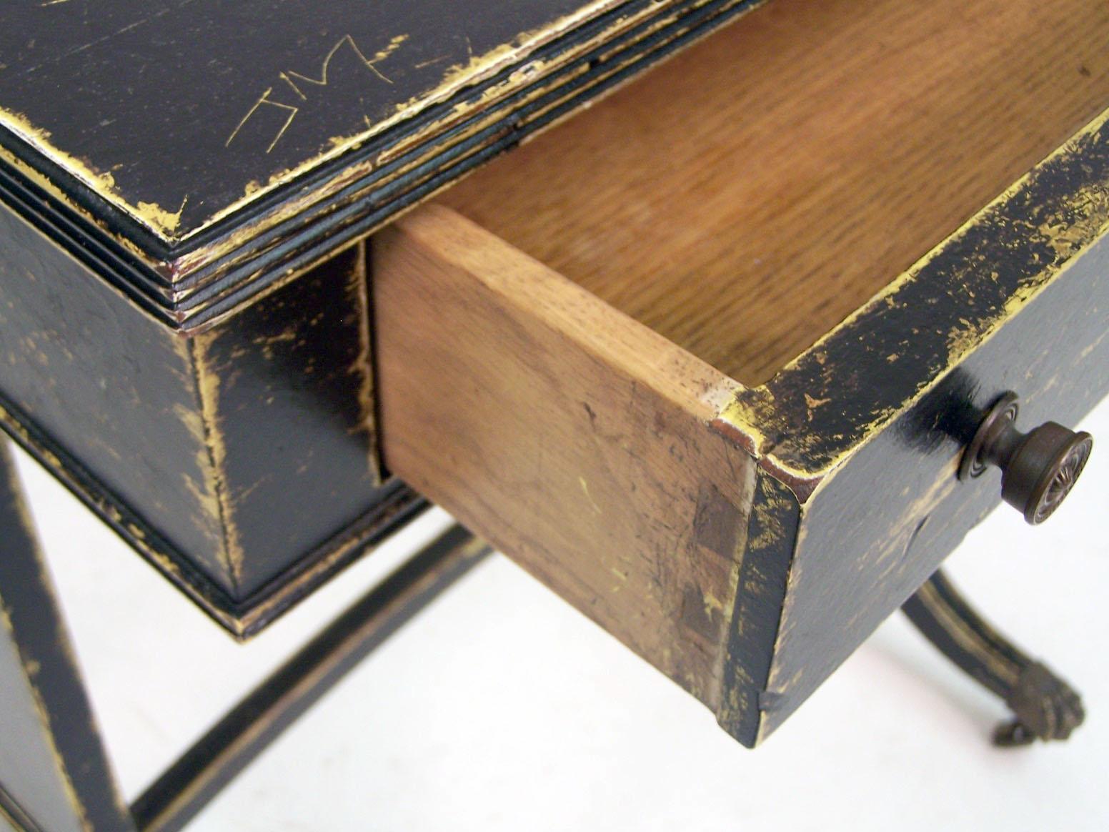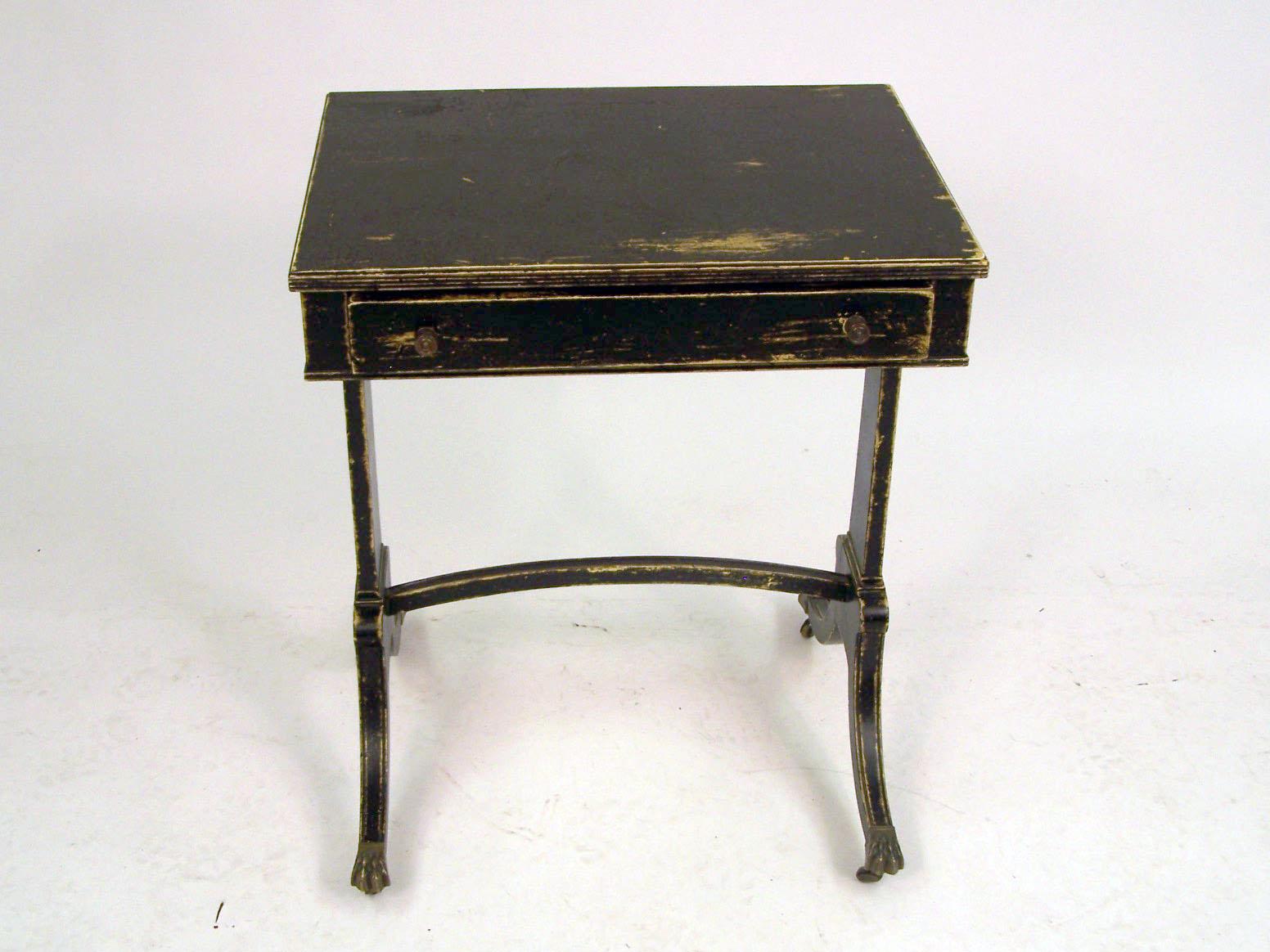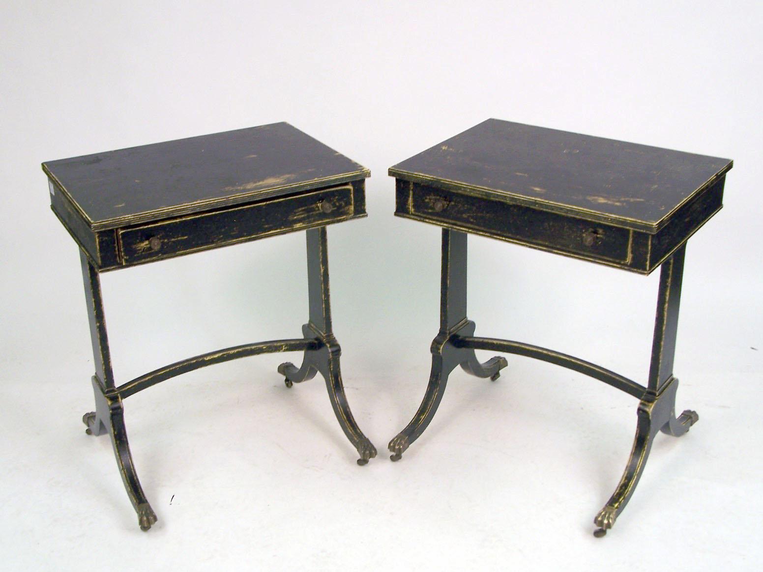 A PAIR OF REGENCY-STYLE BLACK-PAINTED ONE-DRAWER END TABLES