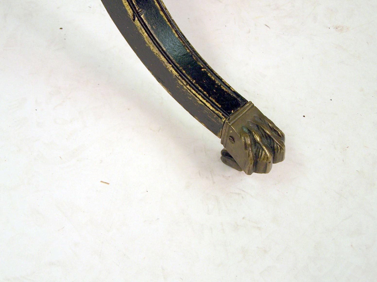 The legs ending in brass lion paws; further on casters. 28"h x 23"w x 17"d Wear and scratches to paint overall.