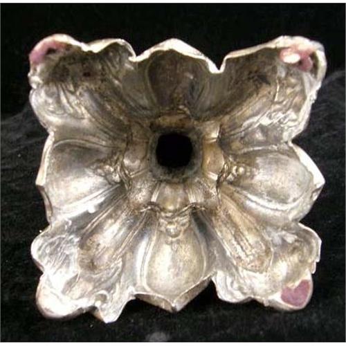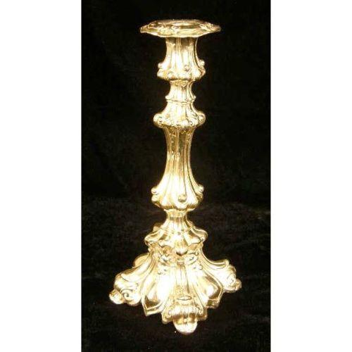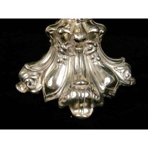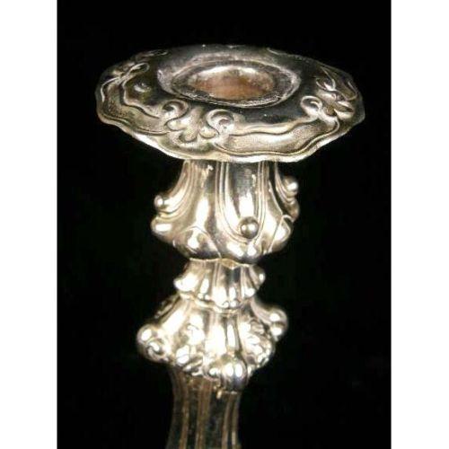 A PAIR OF ROCOCO SILVER PLATED CANDLESTICKS<BR><BR>With removable bobeche, 10-3/4"high