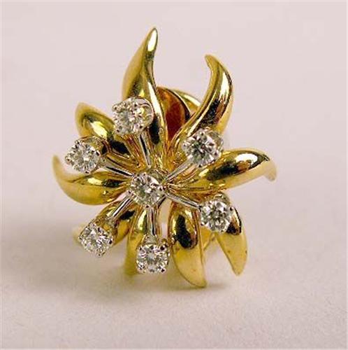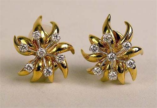 Stamped 750 Tiffany, Schlumberger PT 950, each set with seven prong set round diamonds, each apx. .05 carat, 3/4"dia.