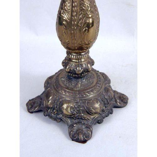 A PAIR OF SILVER-PLATED CANDLESTICKS<BR><BR>With leafy bobeches, stamped on base, Cambridge, 16-1/2"h