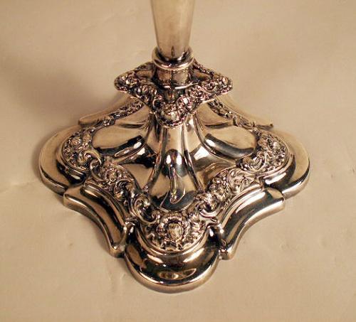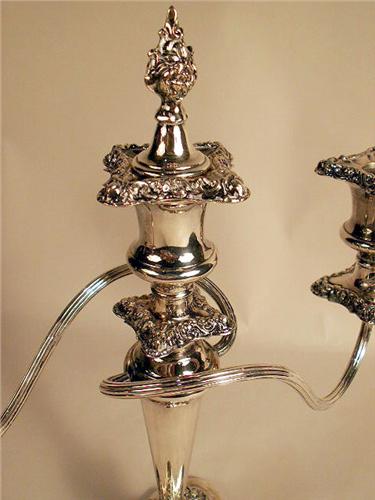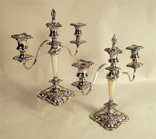 Each with a removable center finial to alternate from a two-light to a three-light candelabra, weighted. Approximately 12"h.