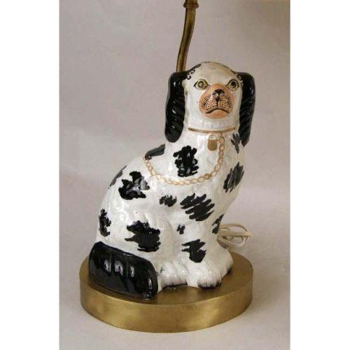 A PAIR OF STAFFORDSHIRE KING CHARLES SPANIELS<BR><BR>Mounted as lamps, 9"h
