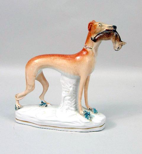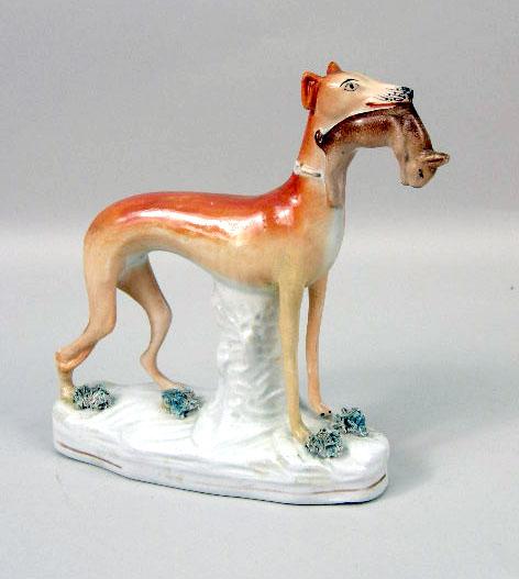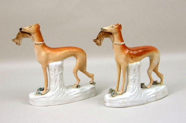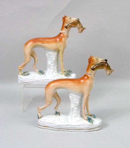 A PAIR OF STAFFORDSHIRE PORCELAIN WHIPPETS