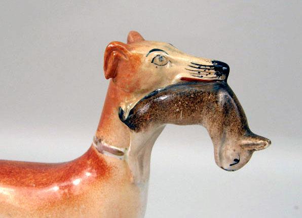 With dead game in their mouths. 7 1/2"h Restoration and losses.