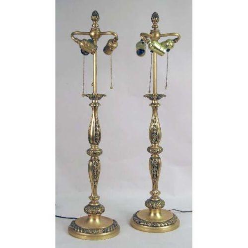 A PAIR OF "STERLING BRONZE COMPANY OF NEW YORK" TABLE LAMPS<BR><BR>19"h, 29-1/2"h overall