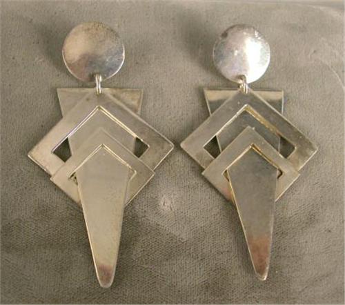 A PAIR OF STERLING SILVER ART DECO MOTIF EARRINGS;