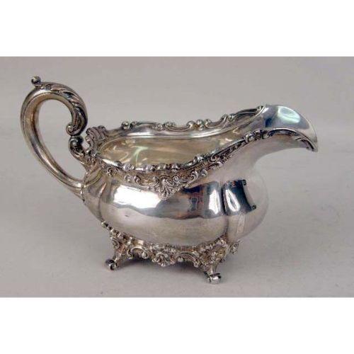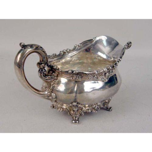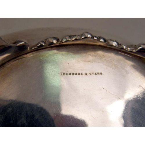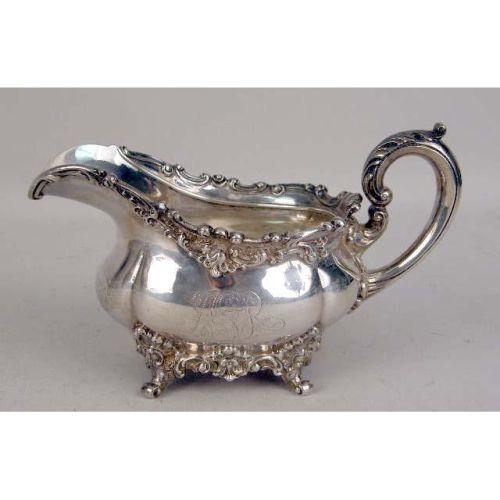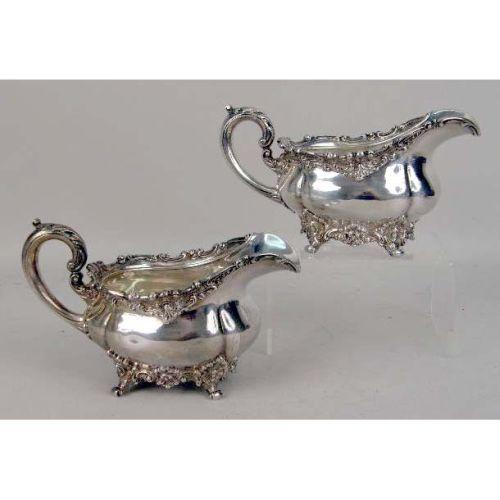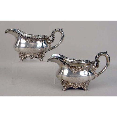 A PAIR OF THEODORE B. STARR STERLING SILVER FOOTED GRAVY BOATS<BR><BR>Monogrammed AGR, with scroll & shell motif and acanthus decorated handles, 8-1/4"long over handle, 4-1/4"high, weight apx. 33 T.O. Provenance: The Estate of Geraldine Rockefeller Dodge