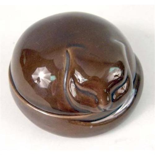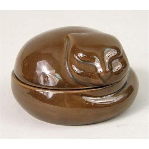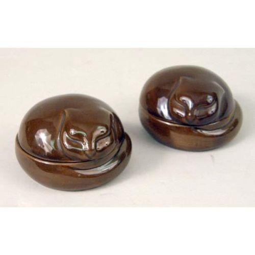 A PAIR OF TIFFANY BROWN PORCELAIN COVERED BOXES<BR><BR>In the form of sleeping cats
