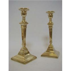 A PAIR OF VICTORIAN BRASS CANDLESTICKS, tapered columns, height 25cm (2) 30-40
