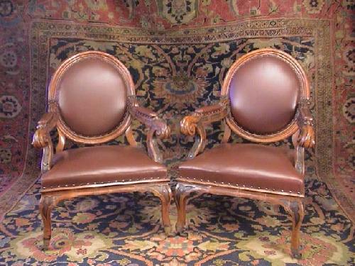 A PAIR OF VICTORIAN CARVED OAK ARMCHAIRS; Probably lacking feet