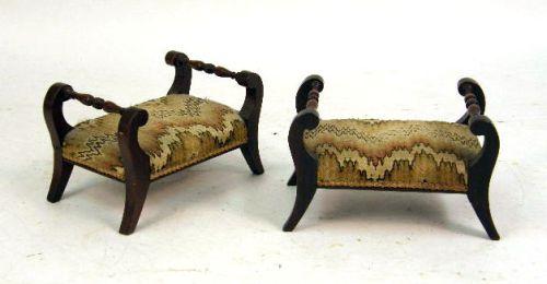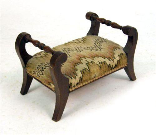 With flame-stitch upholstery. 9 1/2"h x 15"w x 9"d