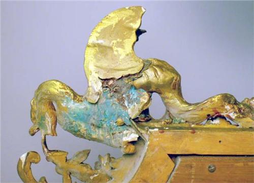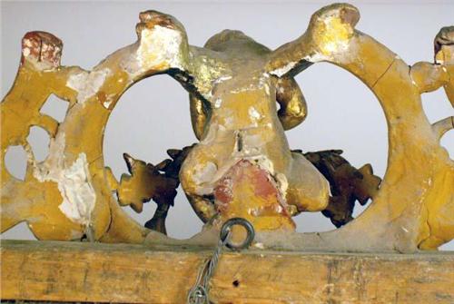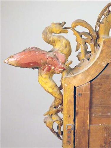 Probably English, one with some losses to decorations on right side, some repairs, 6`8"h x 5`4"w
