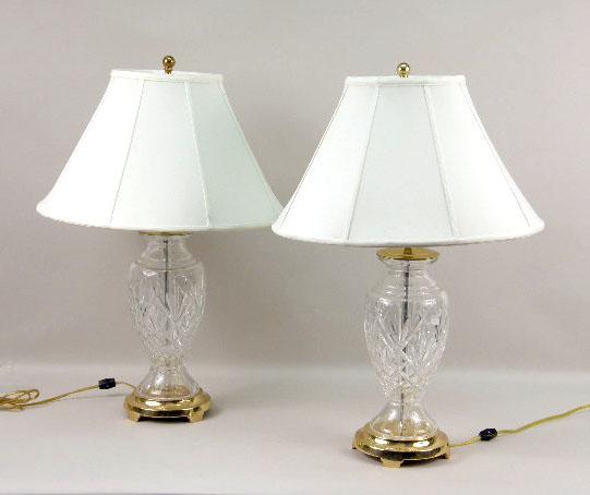 A PAIR OF WATERFORD CRYSTAL BRASS-MOUNTED TABLE LAMPS