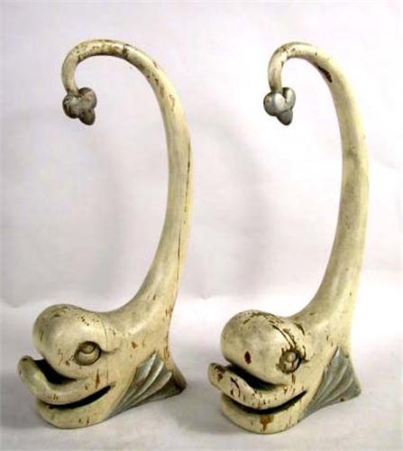A PAIR OF WHITE-PAINTED STYLIZED DOLPHIN FORM FIGURALS; (losses) 13 1/2"h