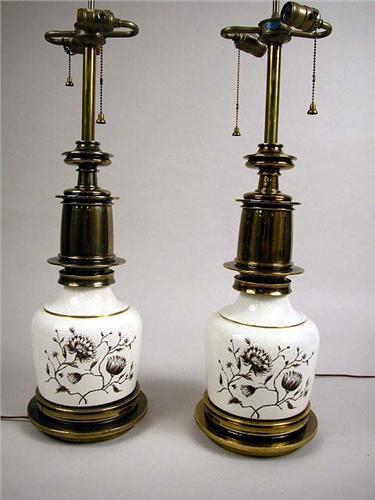 A PAIR OF WHITE PORCELAIN AND GILT METAL MOUNTED LAMPS Electrified, some wear, 33 1/2"h