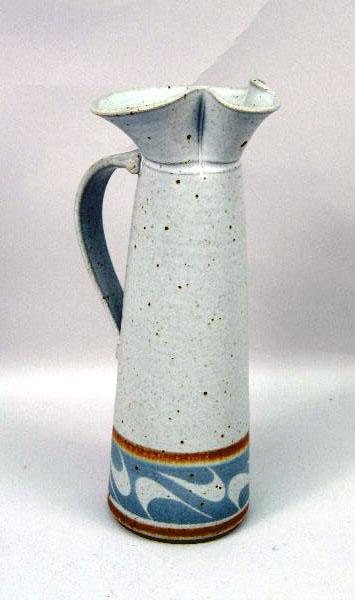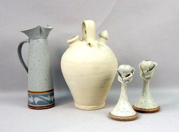 Together with an art pottery wine jug and pitcher. The tallest 13"h