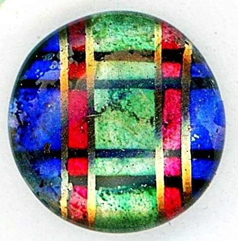 21 Small 19th century metal backed kaleidoscope examples. This card includes a wonderful array of colors, fancy tops and more. Notice the nice colorful realistic shell shape example.