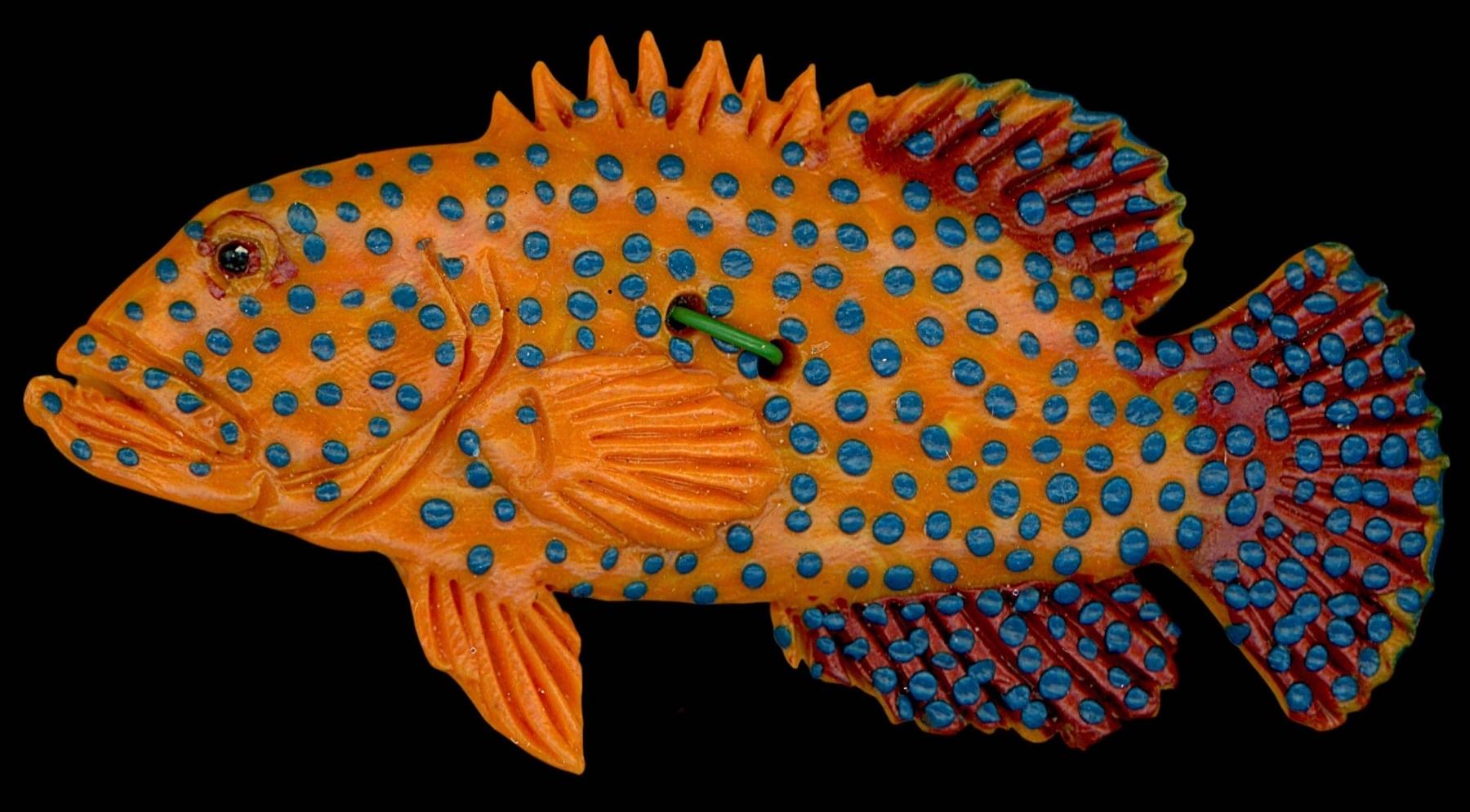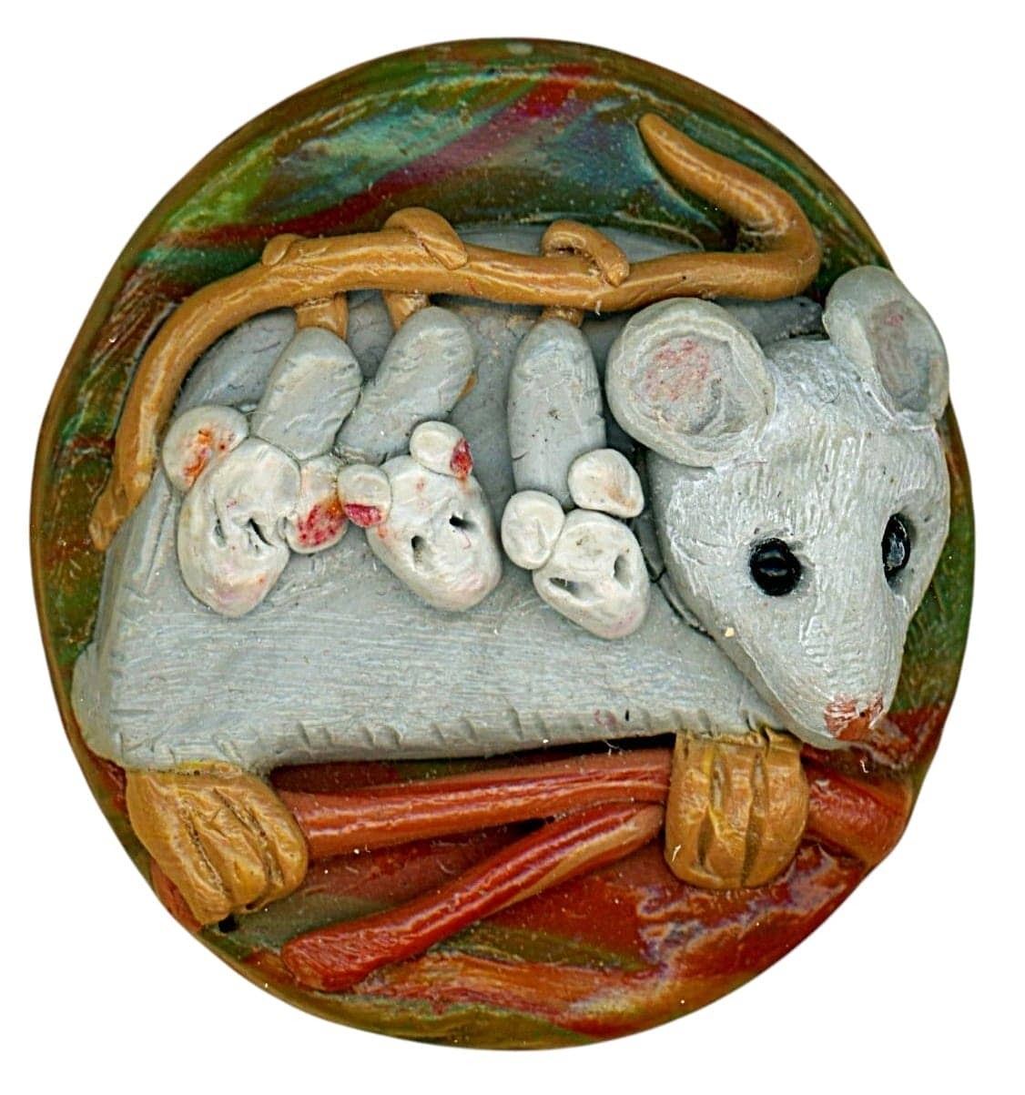 14 Large 20th/21st C. assorted material & subject matter examples. Here is a nice selection of assorted Studio artist buttons including an extra large realistic beaded fish, a fun mama mouse and babies, and more. Some done by Nikki Deal and the card is from her personal collection.