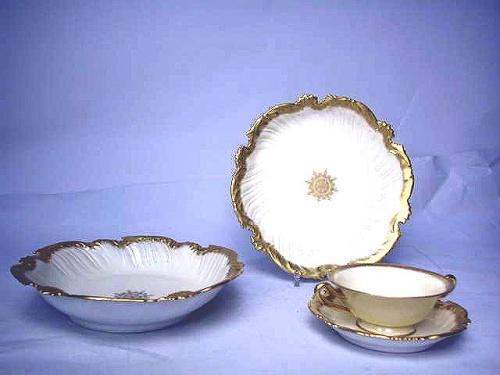 A PARTIAL LIMOGES DISH SET; Including a condiments tray, celery dish and leaf shaped platter, Together with Lenox dinner plates and saucers Approximately 104 pieces