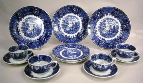 A PARTIAL SET OF BLUE AND WHITE DINNERWARE SERVICE; Arabia pattern, Finland