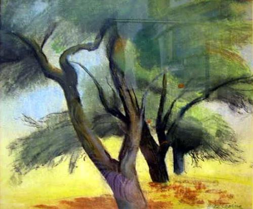 A PASTEL ON PAPER; depicting an alley of trees, signed l.r. Prestopino Probably Gregorio Prestopino, American, 1907 - 1984). 11 1/2" x 14"