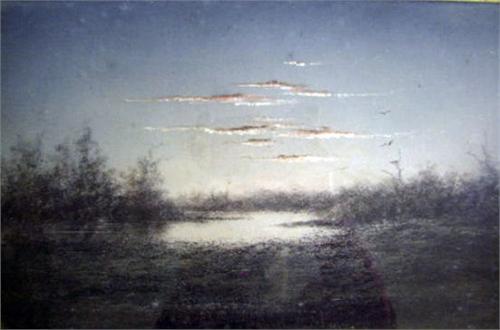 A PASTEL ON PAPER; depicting an evening sky over a lake, signed illegibly l.l. 8" x 12"