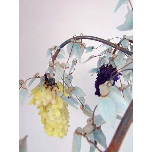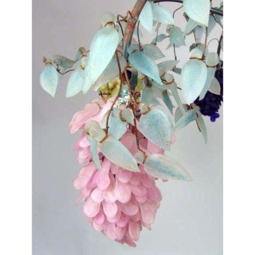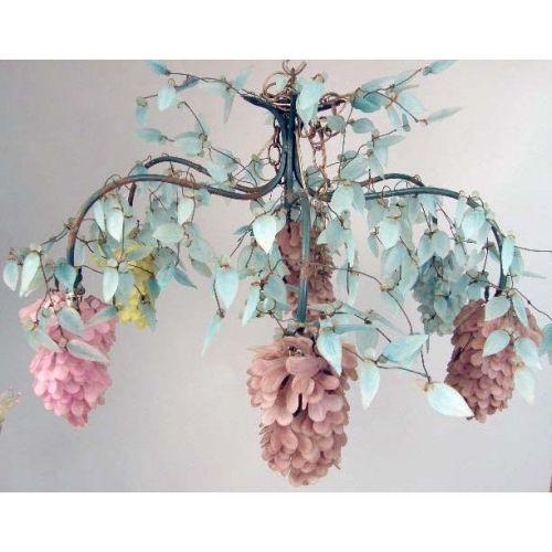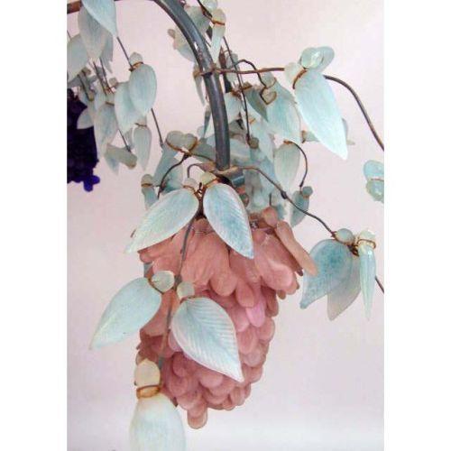 A PATINATED BRONZE AND FROSTED GLASS "WISTERIA" CHANDELIER<BR><BR>Possibly based on the Louis Comfort Tiffany Wisteria Window in the Metropolitan Museum of Art, 24"h without chain, approximately 38"dia.