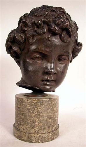 A PATINATED METAL BUST OF A YOUNG BOY ON MARBLE BASE; 12"h