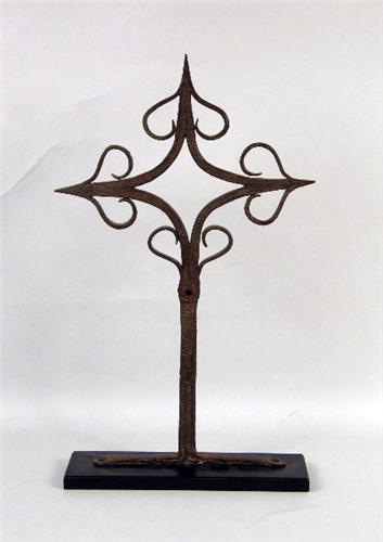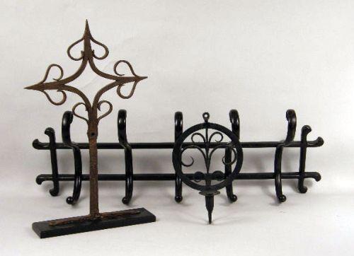 Mounted on a base. Together with a black-painted metal wall sconce and a black-painted wood coat rack. 24"h to 39"l