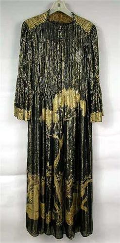 A PAULINE TRIGERE BLACK AND GOLD EVENING GOWN;