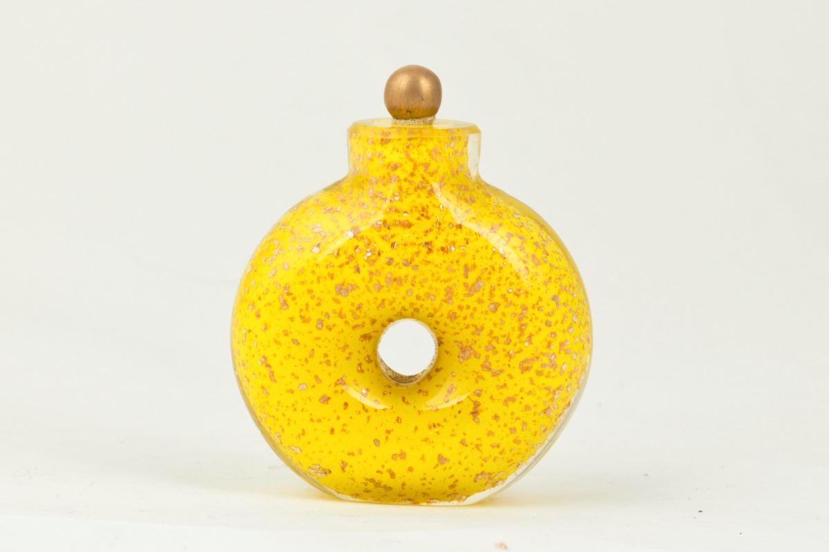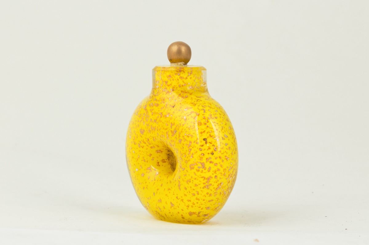 With spotted yellow paint and gold colored knob. Length 2.25" Width 1" Height 2.75"