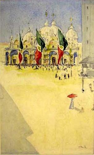 A PEN AND INK ON PAPER; Depicting Italian street scene, Signed LR illegible John R. 8"h x 13"w