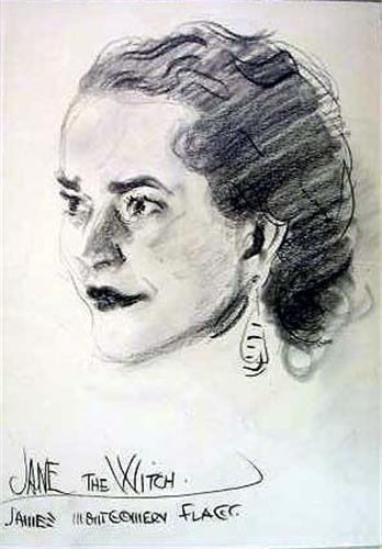 A PENCIL AND CHARCOAL DRAWING, "JANE THE WITCH"; By James Montgomery Flagg 13"h x 9"w