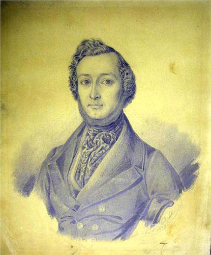 A PENCIL ON PAPER; depicting a young man exquisitely dressed in a coat with eagles and anchors on the buttons; the whole heightened with traces of gum Arabic, signed l.r. Louis Potschke 1838. Together with a watercolor of a seated young man, signed l.l. V
