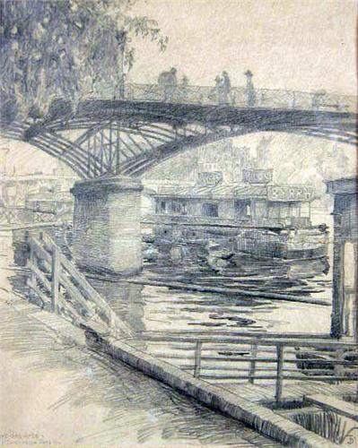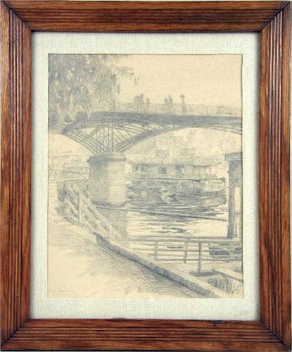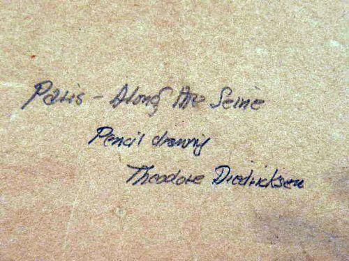 Pont des Arts, titled, signed and dated l.l.c. T. Diedricksen Paris 1911, l.r.c. initialed "TD", verso in pencil with the artist`s name, "Theodore Diedricksen" (American, 1885-1967). Sight size 12"h x 10"w