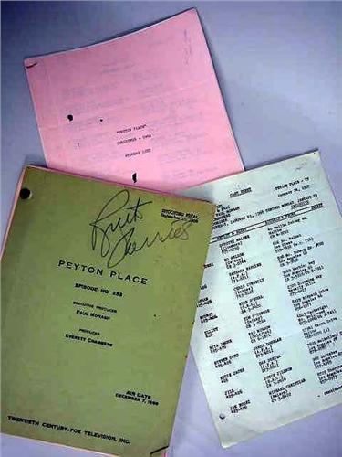 A PEYTON PLACE EPISODE NO. 293, 1966 SCRIPT; Signed Ruth Warrick, together with a cast sheet for Jan 24th 1967 and a 1966 Christmas address list