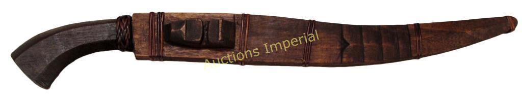 With wooden mounts and handforged blade. Mid-20th century. Overall length 45.1 cm.