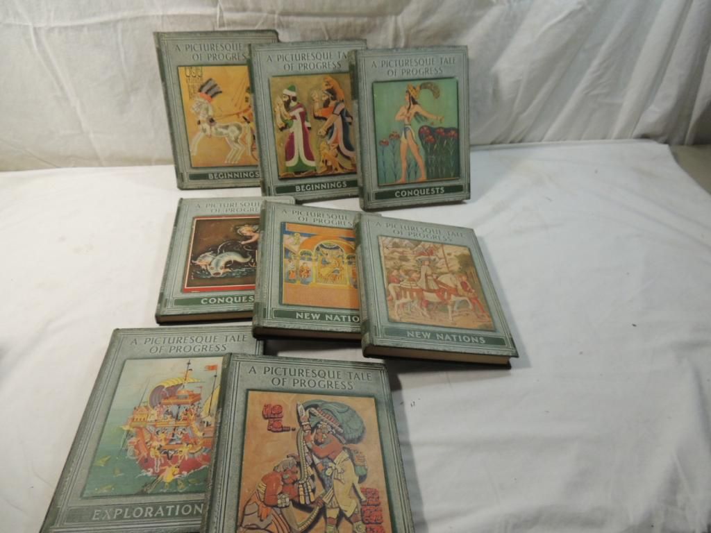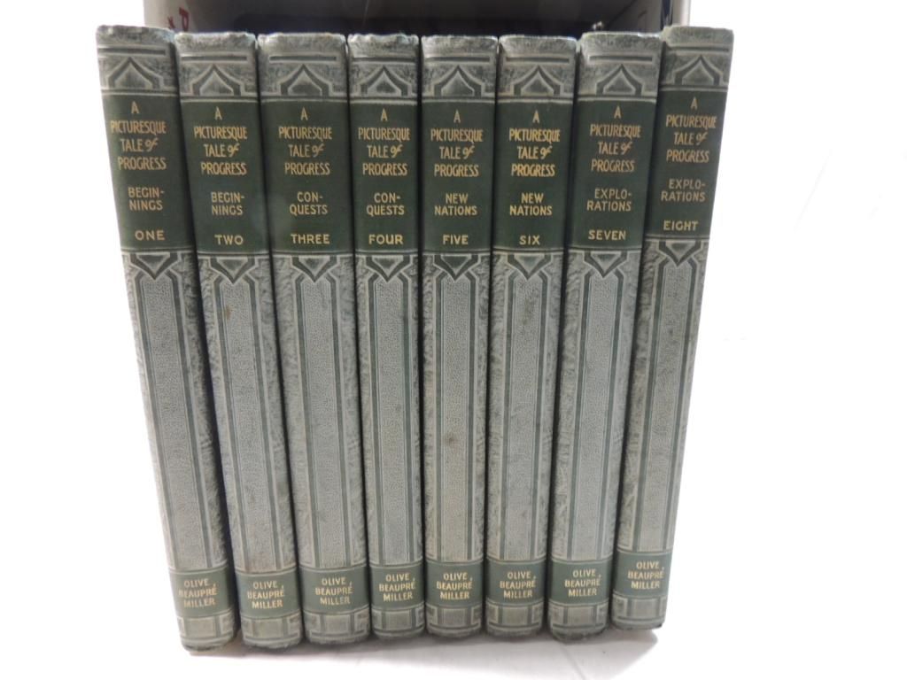 A PICTURESQUE TALE OF PROGRESS VOLUMES ONE THRU EIGHT VINTAGE BOOKS HARD COVER OLIVE BEAUPRE MILLER AS SHOWN SEE PHOTO FOR MORE DETAILS