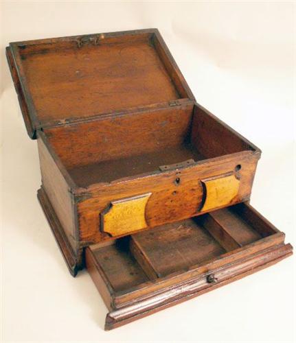American. Losses, cracks, and wear, top with heavy bruising. 8 3/4"h x 16"w x 10 1/2"d.