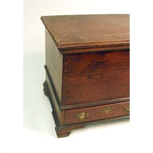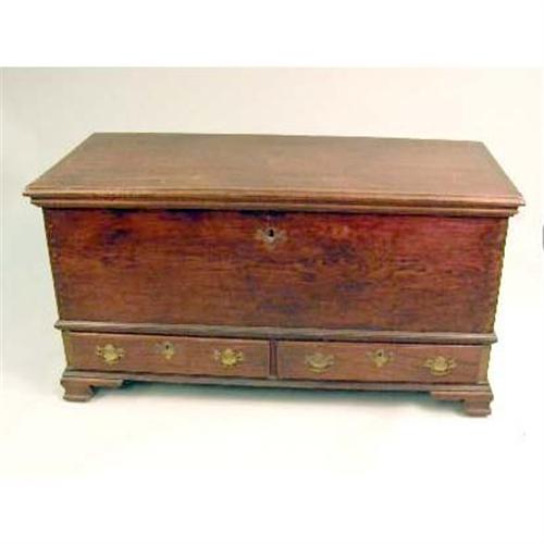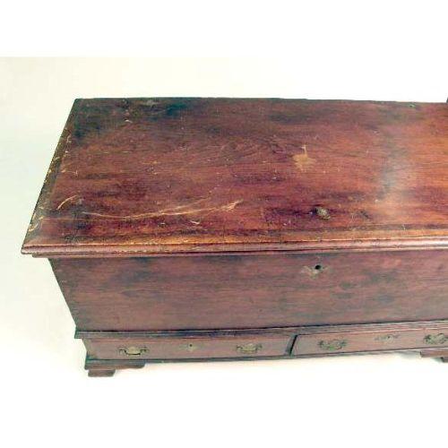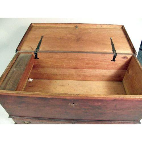 A PINE AND WALNUT LIFT-TOP BLANKET CHEST<BR><BR>American, the interior fitted with a till, some repairs, 28-1/2"h x 4`7"w x 25"d