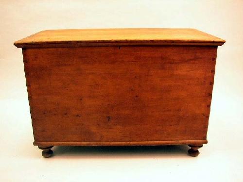A PINE BLANKET CHEST; American, fitted with a till on ball feet, Retains traces of red wash 28"h x 42"w x 21"d